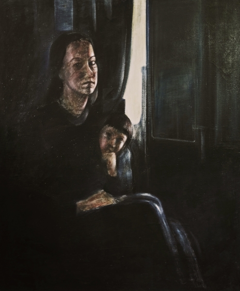 Henri Deparade, 1988, Mutter und Kind, Ölfarbe auf Leinwand, 130 x 120 cm