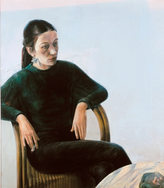 Sitzender Akt, 1988, Ölfarbe/ Temperafarbe auf Leinwand, 140 x 120 cm