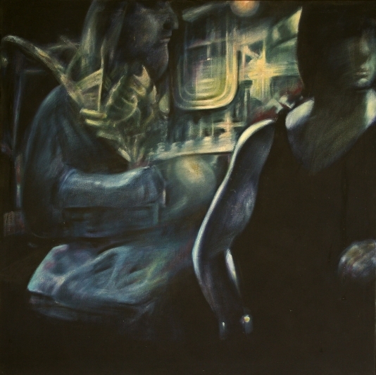 Musiker, Ölfarbe und Temperafarbe auf Leinwand, 130 x 130 cm