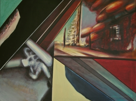 Tunnel 1987, Ölfarbe auf Hartfaser, 140 x 140 cm